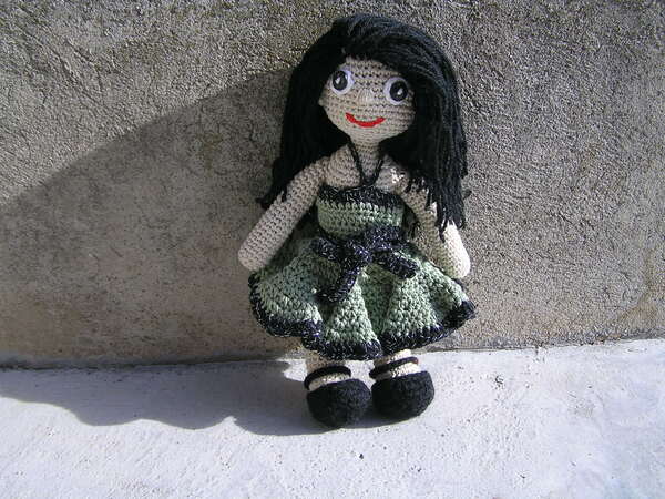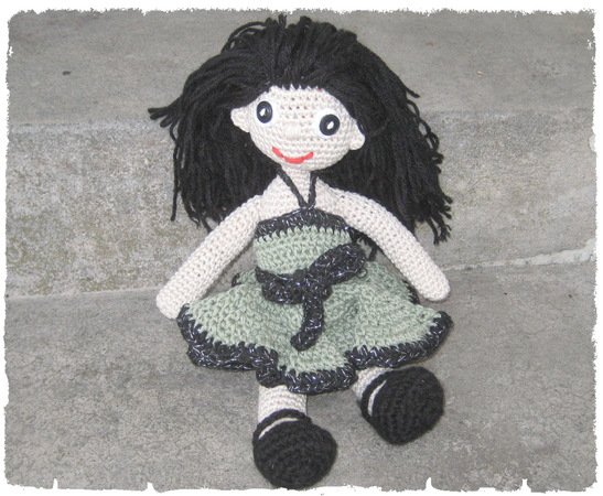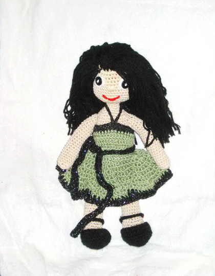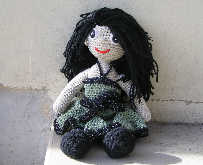 With this PDF crochet pattern you can make beautiful crocheted amigurumi doll in olive green dress. This is a nice toy pattern and perfect gift for your little girls, that you can make by yourself. Made from cotton worsted weight yarn and crochet hook 3.0 mm. Dimensions of this doll: 37 cm (14,5 inches) height. Pattern is written in English, U.S. terminology.