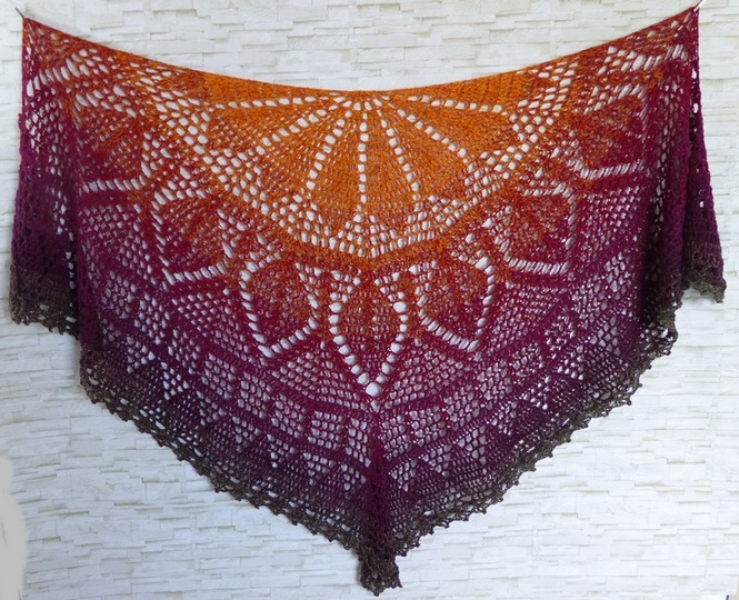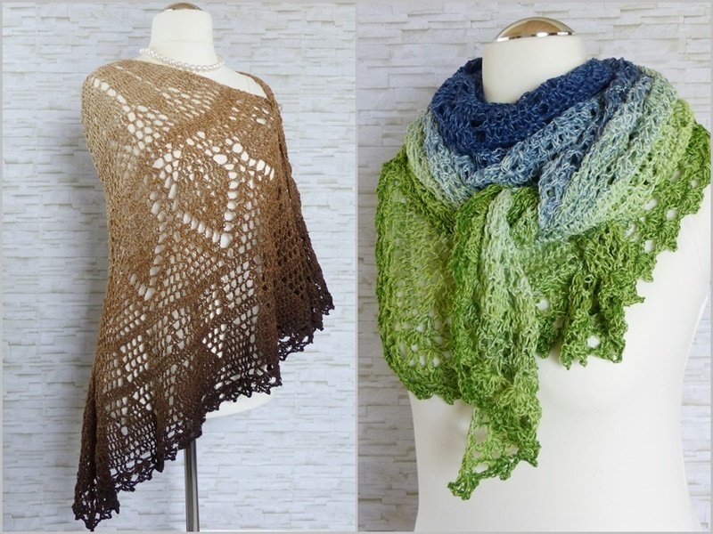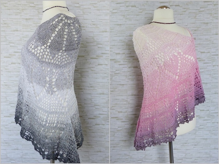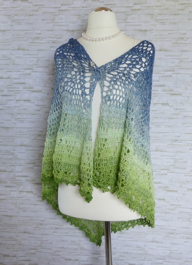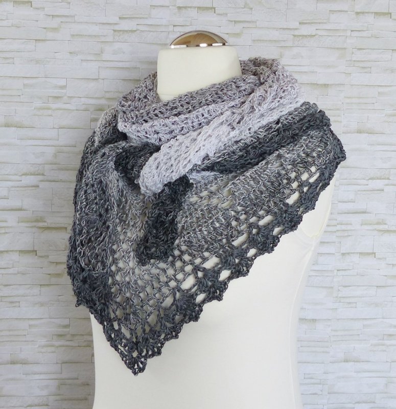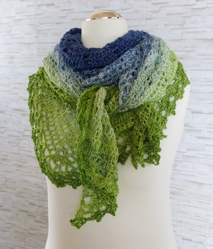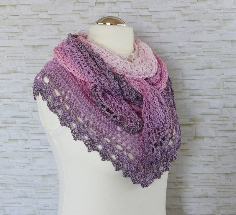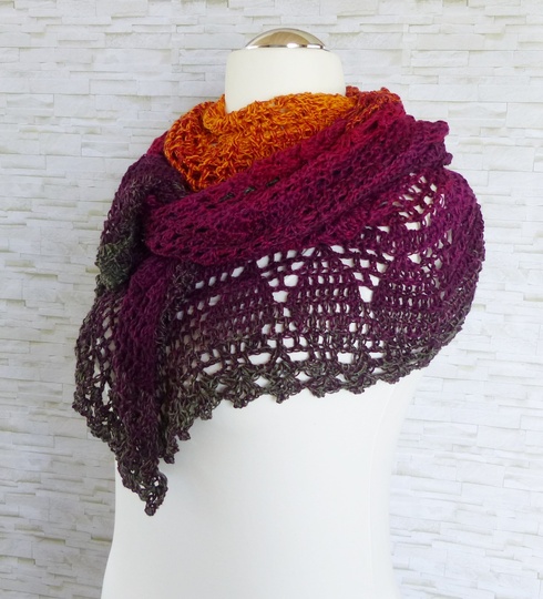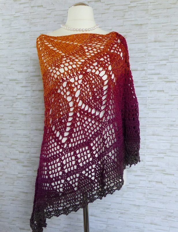 Crocheted shawls are back in fashion, whether as a shawl or a decorative scarf. An eye-catcher with the color gradient wool (Bobbel). A unique accessory for yourself or perhaps a gift for a loved one!