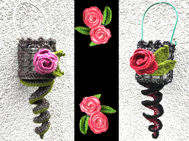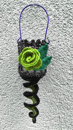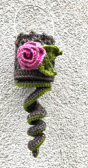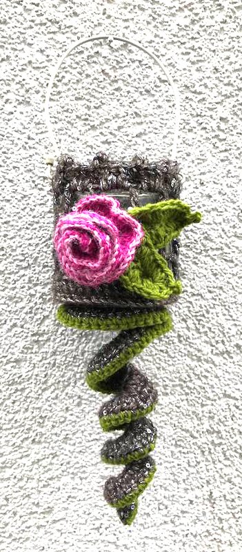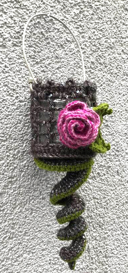 FARBEN:..dunkelrot.....rosa ..grün: für die Blumen - und eine graue Wolle die auf 50 gr - 80 m hat und noch als Beilaufgarn noch eine Glitzerwolle mit Pailletten : Starlight Linie 344 von FIRMA ONLINE