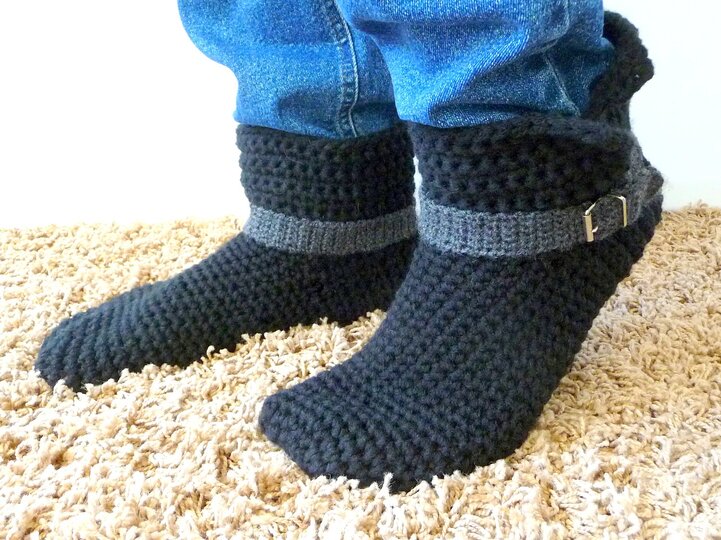 Der Basic-Hausschuh passt in jede Handtasche und ist ideal für Kurzbesuche bei Freunden und als Reisehausschuh. Schnell sind auch ein paar Hausschuhe für Besucher gehäkelt.