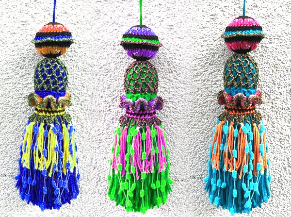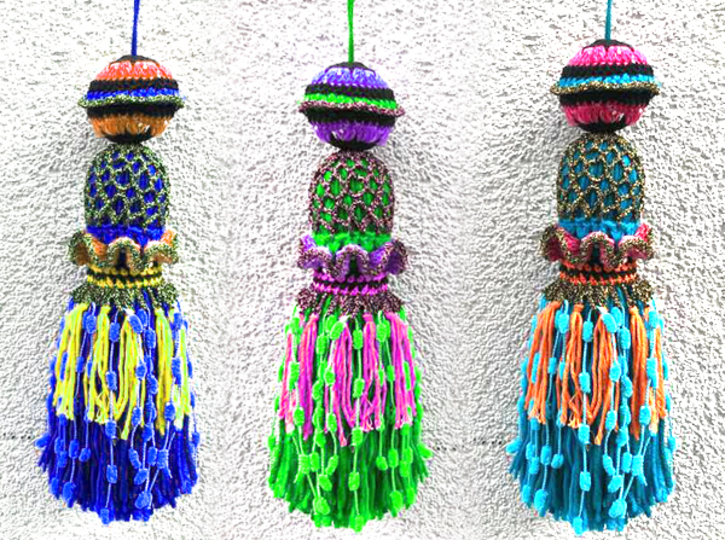 Ob als Anhänger von Raumdecor, oder auch mal an eine schöne Mütze, als Girlande ....für Balkon, Terasse und Garten...oder einfach nur als Geschenk, die gehäkelten DECO - Quasten kann man immer so nebenbei aus allen Wolleresten erarbeiten.