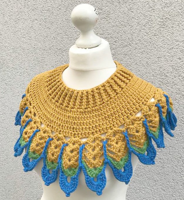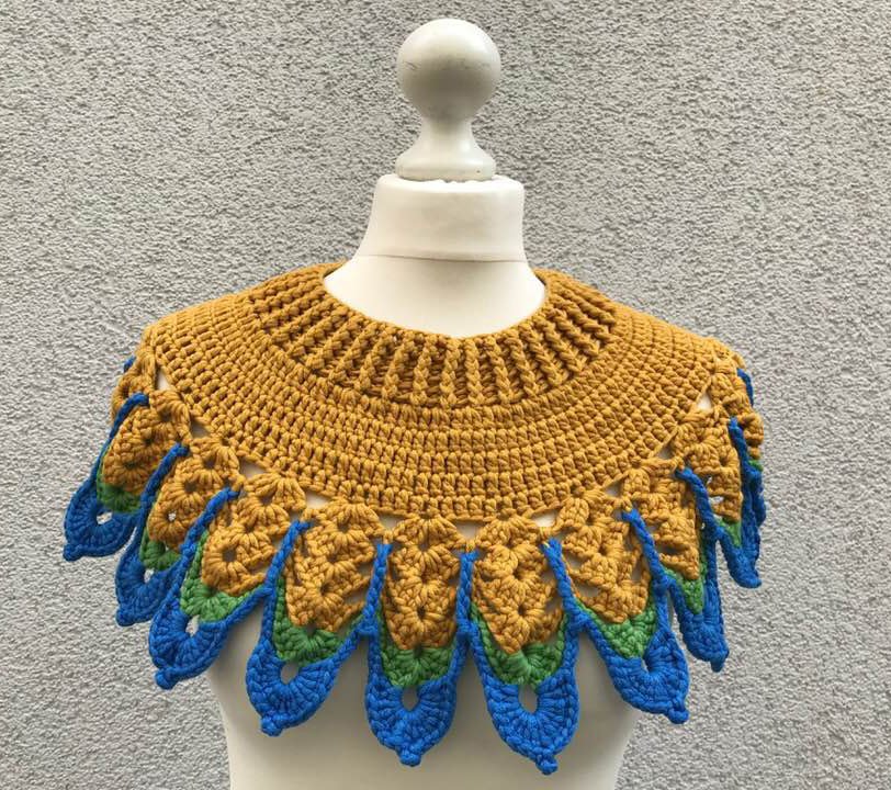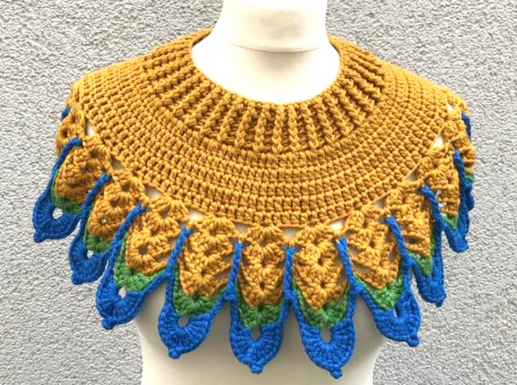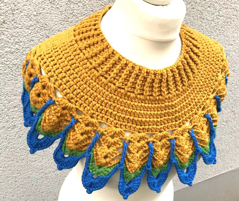Den Kragen "Pilotta" habe ich mit drei Farben gehäkelt..er sicht in Uni sicher auch sehr gut aus.....oder auch 3 verschiedene Garne von der Struktur her..