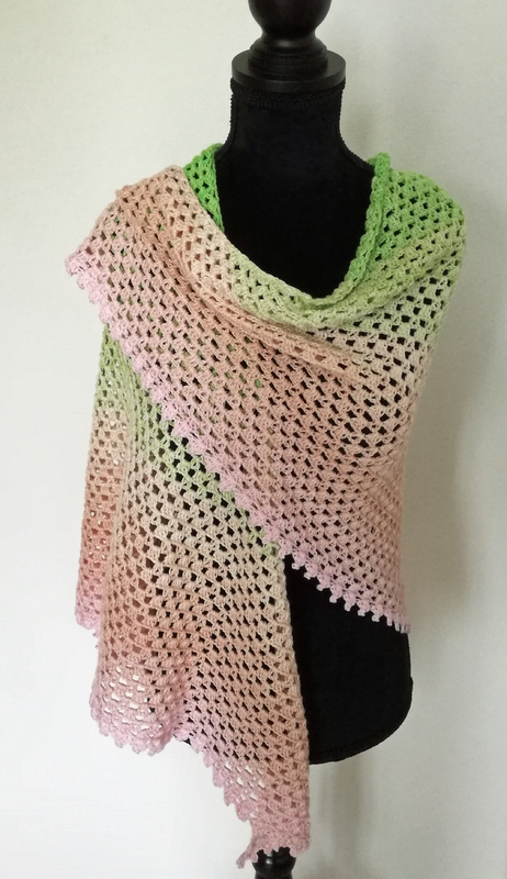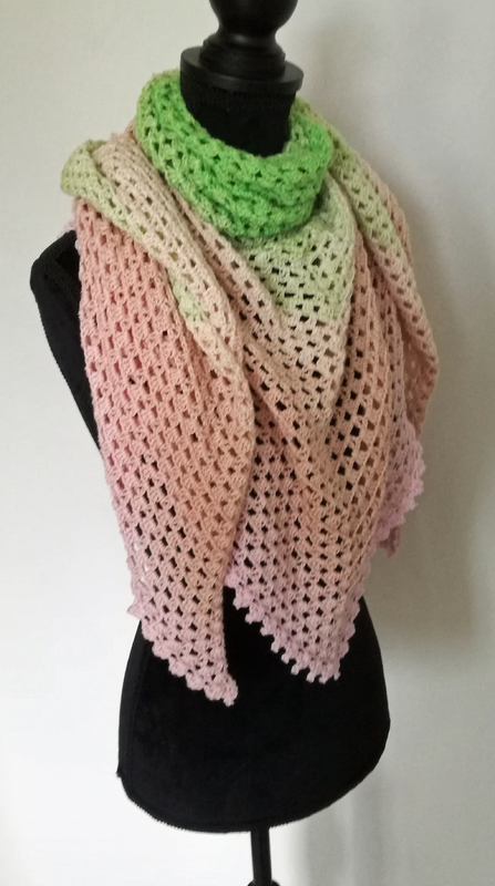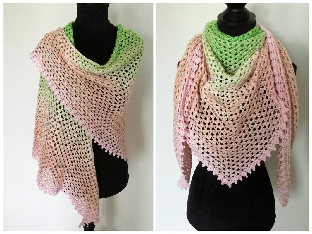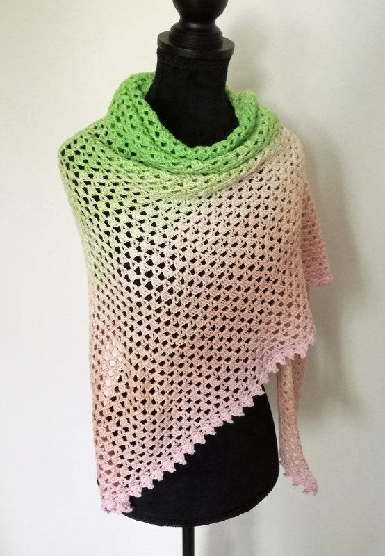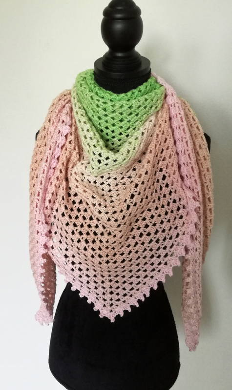 This is an easy shawl which is the perfect project for beginners or a good in-between-pattern for advanced crocheters.