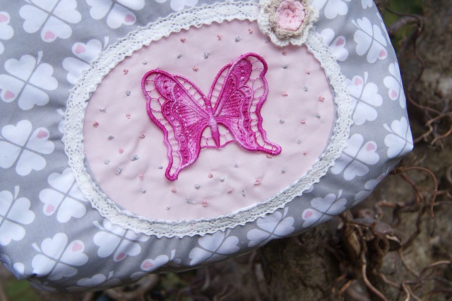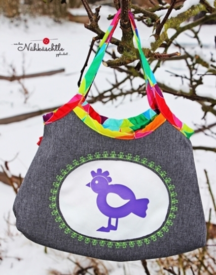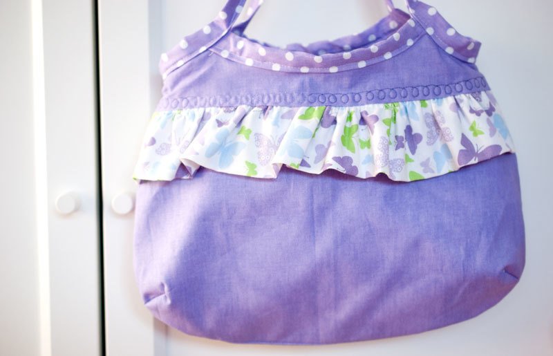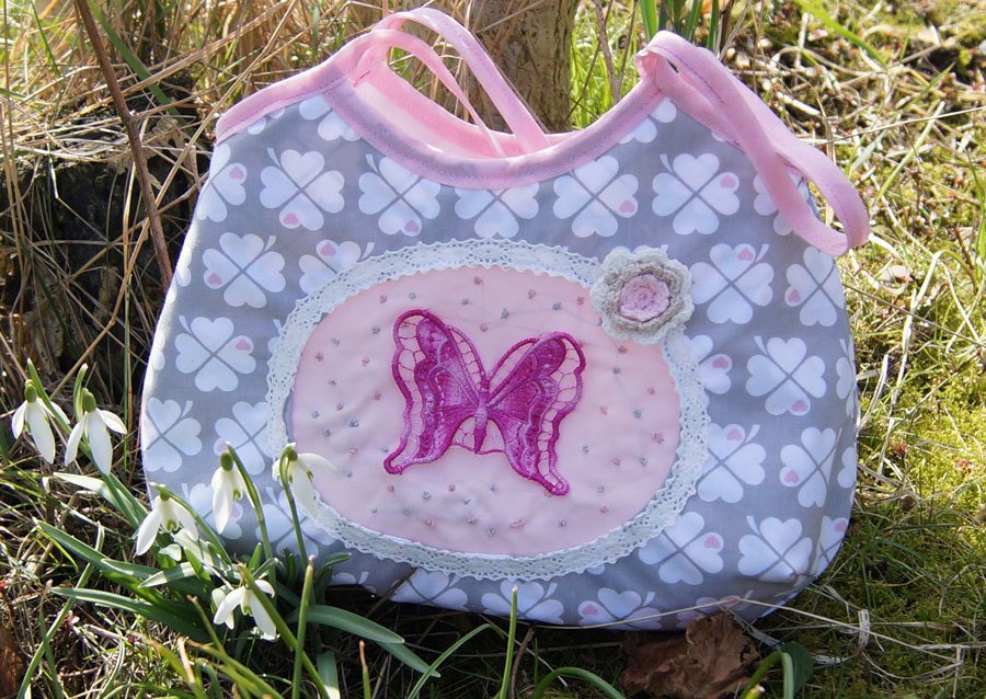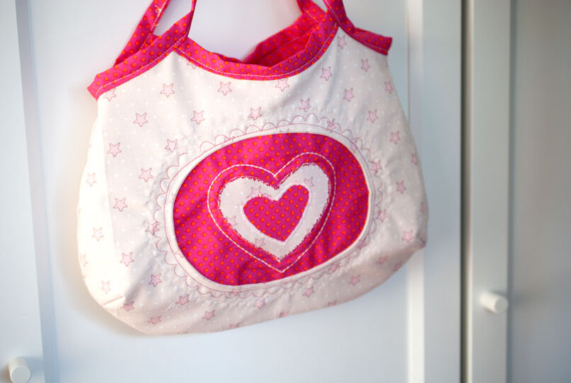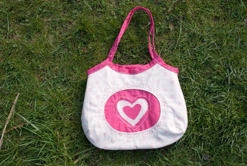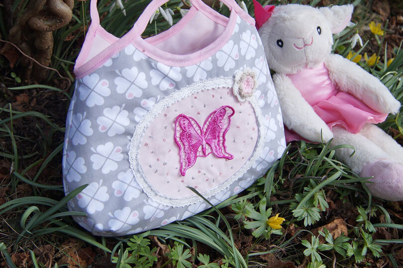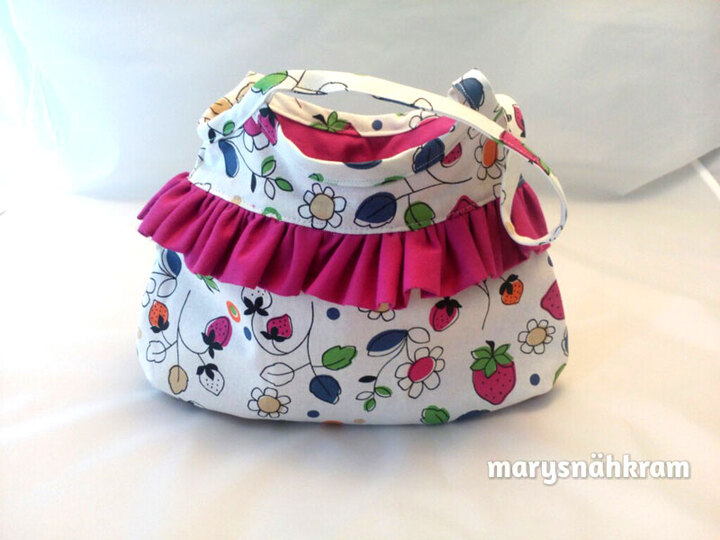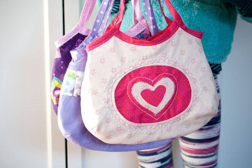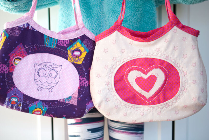 Mit dieser Handtasche für kleine Mädchen wollte ich meine Töchter glücklich machen, und so habe ich Joelle erfunden, eine niedliche Mädchen-Handtasche, die du entweder mit einer Rüsche oder mit einem "Guckloch" nähen kannst, das du beliebig mit Plot, Stickerei oder Applikation verzieren kannst.