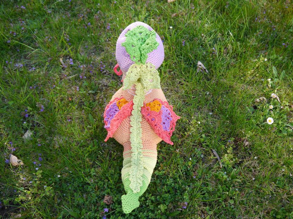 Meine Lessly ist nun 45cm hoch geworden, je nach Wolle und Häkelfestigkeit kann sie größer oder kleiner werden.