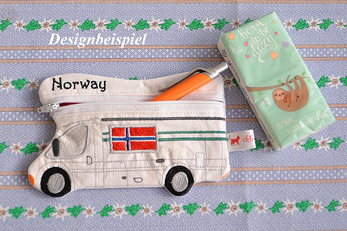 Geliefert werden 8 Stickdateien, davon 4 ITH - Taschen in Wohnmobilform und 4 ITH - Taschen in Wohnwagenform.