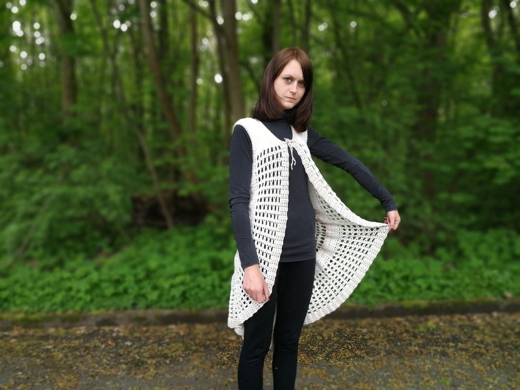 Diese tolle Kreisweste ist der perfekte Begleiter im Sommer. Sie peppt jedes Outfit ab und ist ein echter Hingucker.