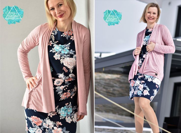 Du kannst deine Adele mit verschiedenen Schal-Varianten nähen und in 2 Längen nähen. Ganz schlicht kannst du es halten, wenn du dich für den großen oder den kleinen Schal entscheidest. Kombinierst du beide Schal-Teile miteinander, erhältst du die Möglichkeit, mit Stoffkombinationen zu spielen. Ob nun bunt und bunt oder uni und Streifen oder Punkte - es gibt unzählige Kombinationen! Du kannst deine Adele als fluffigen, kurzen Cardigan für den Sommer nähen oder als kuschelige, lange Jacke für den Winter. Zusätzlich kannst du deine Adele mit Bindebändern zum verschließen versehen. Lass deiner Fantasie freien Lauf!