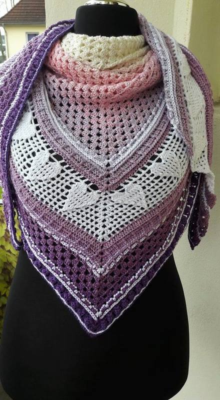 Sie suchen ein Tuch mit Herz? oder ein Tuch zum Muttertag oder für einen lieben Menschen? Hier haben wir das Richtige für Sie. Jacqueline Krämer wohnt in Bayern und hat dieses Tuch als Homage an ihre Wahlheimat entworfen. Sie hat mir die Anleitung zur Veröffentlichung zur Verfügung gestellt. Dieses Tuch kann mit drei Uniknäulis oder einem Farbverlaufsknäuli in harmonisch abgestimmten Farben und zwei Uniknäulis gearbeitet werden. Die Anleitung ist sehr ausführlich geschrieben. Jede Reihe wird schriftlich erklärt. farbige Charts und Fotos ergänzen die leicht und verständlich geschriebene Anleitung (insges. 35 Seiten).