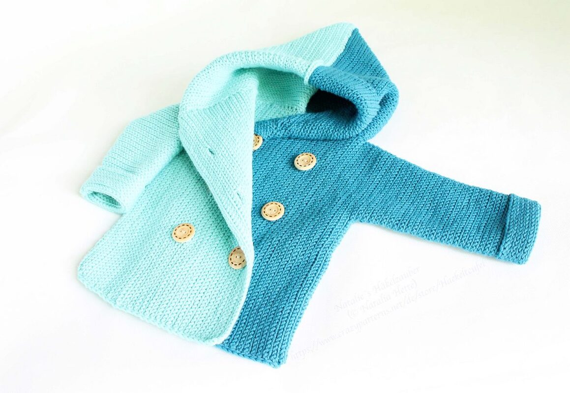 This PDF crochet pattern consists of illustrated tutorial for crocheting a baby or children's jacket "Circus", for size 1 m. to 3-year-old child in a knitted look. The jacket can be crocheted for both summer and winter (depending on the wool).