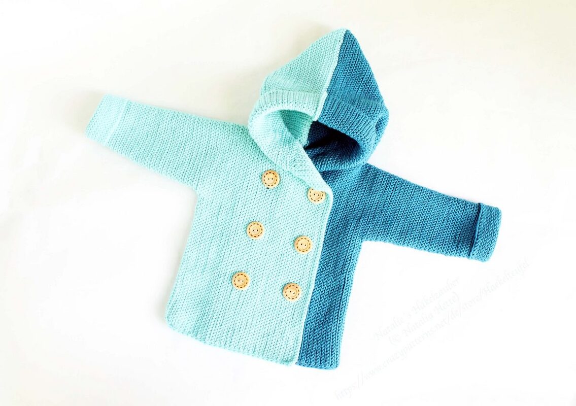 Would you like to crochet a jacket for your child that looks like it has been knitted? Then this crochet pattern is just for you. A simple children's jacket with a hood, double-breasted, which is very quick and easy to make. What makes this jacket special is that it is crocheted from arm to arm and therefore only has two seams. It can be crocheted in either two colours or one colour.