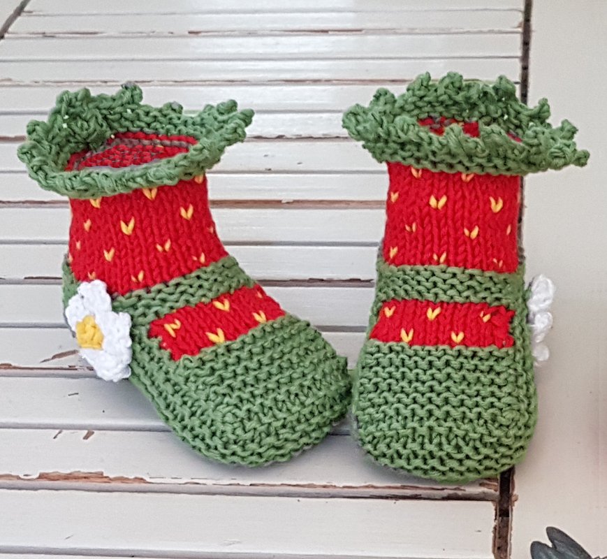 Easy to follow strawberry booties and matching pouch, big enough to store even a dummy!