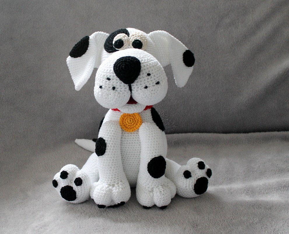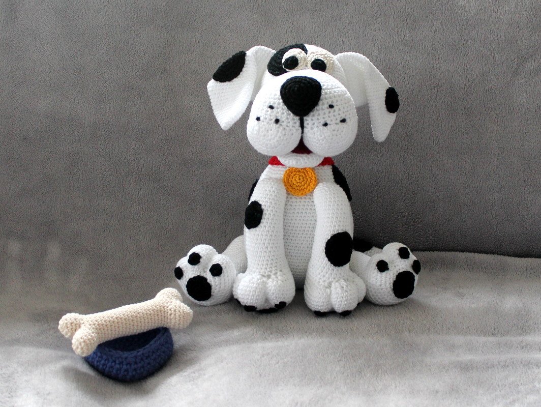 The ready crochet dog may be sold, as long as you add a note "Based on a pattern of masche-fuer-masche" and the link to the pattern.