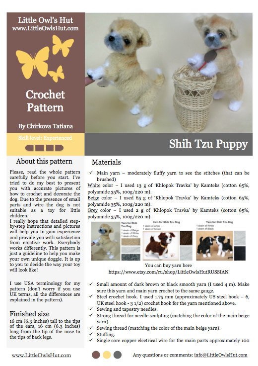 FINISHED SIZE: 16 cm (6.3 inches) tall to the tips of the ears, 16 cm (6.3 inches) long from the tip of the nose to the tips of back legs