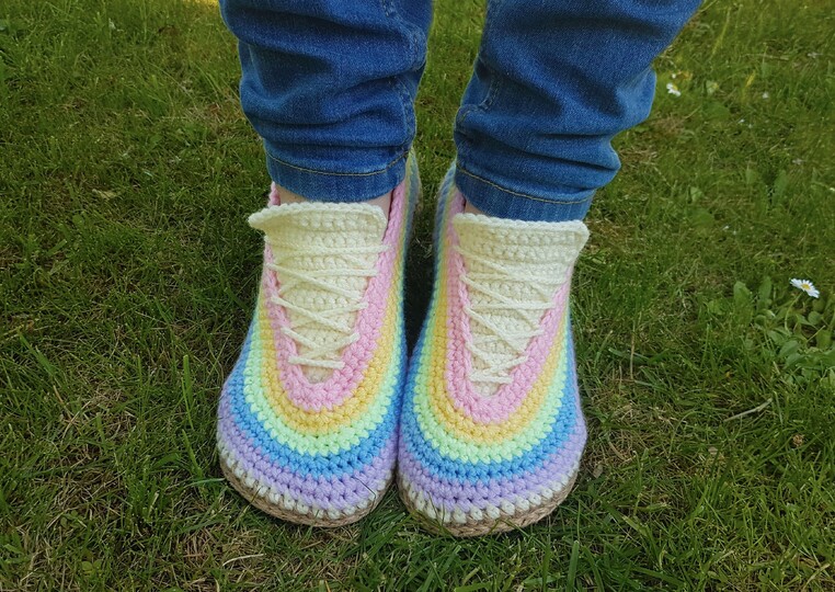 With this Pattern you can work super comfortable shoes in any colour or colour mix as you want – use Packet Cord for outside and wool for inside. This Shoes are really quickly done