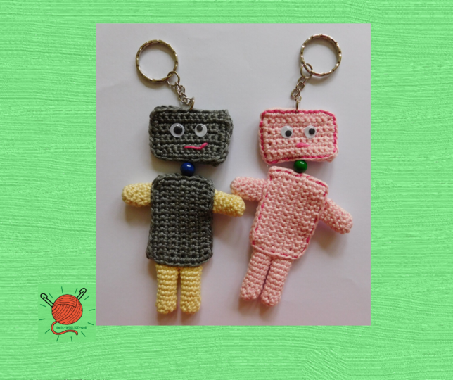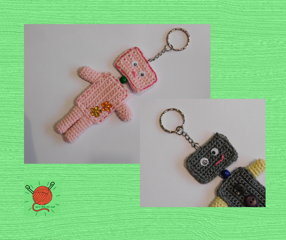 Wenn Du uns mit angegebener Wolle und Häkelnadel arbeitest werden wir ohne Schlüsselring 12 cm groß