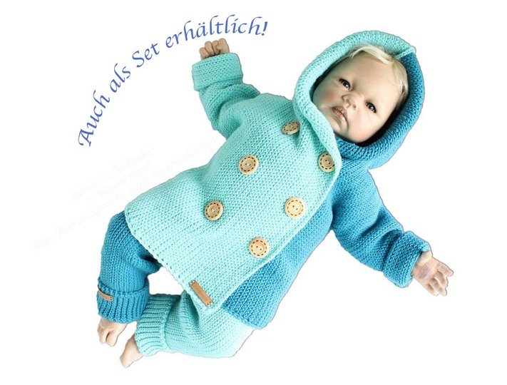 It explains: material, calculation for size 0 m.- 3 y., trouser legs, upper part, cuffs, over 20 photos of working steps, 10 pages.