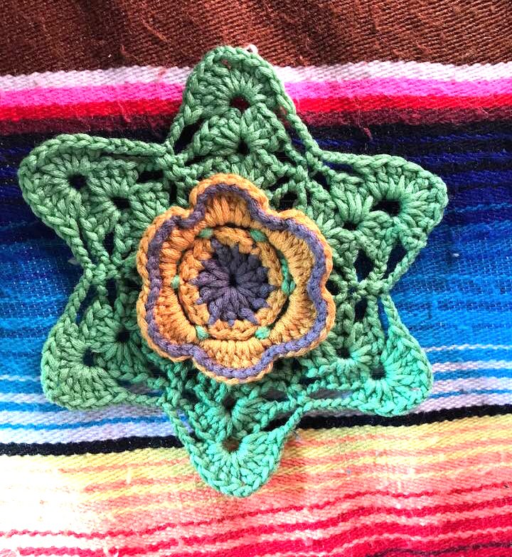 Die schöne Seesternblume ist auch ideal um ein DreiecksTuch zu machen..da muss man nur in der letzten Runde drauf achten sie passenden Spitzen gleich an einander zu häkeln...