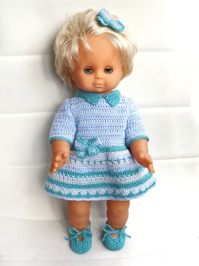 Mit diesem Puppenkleider - Set ist jede Puppe stadtfein.