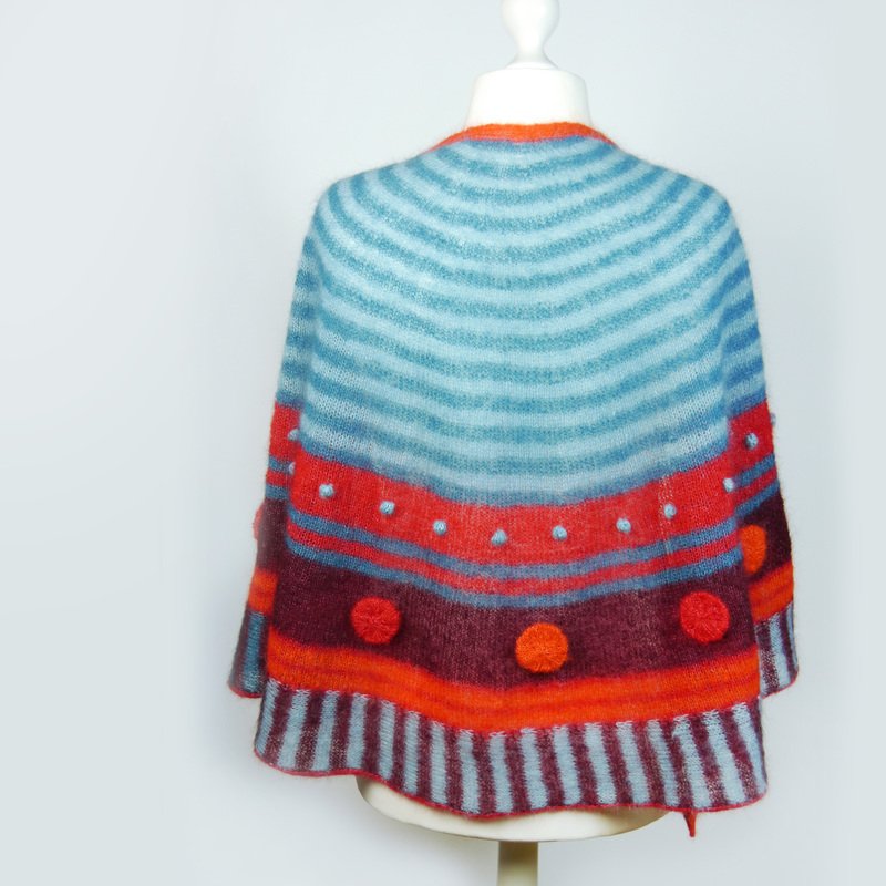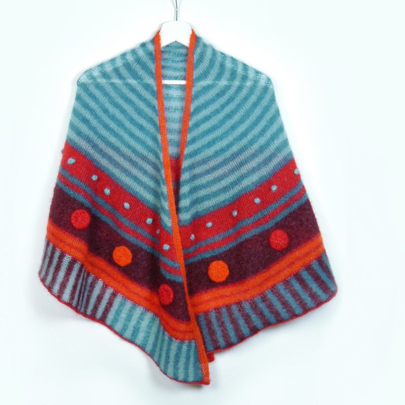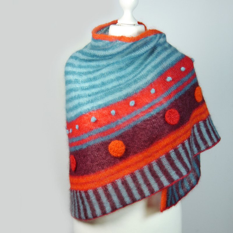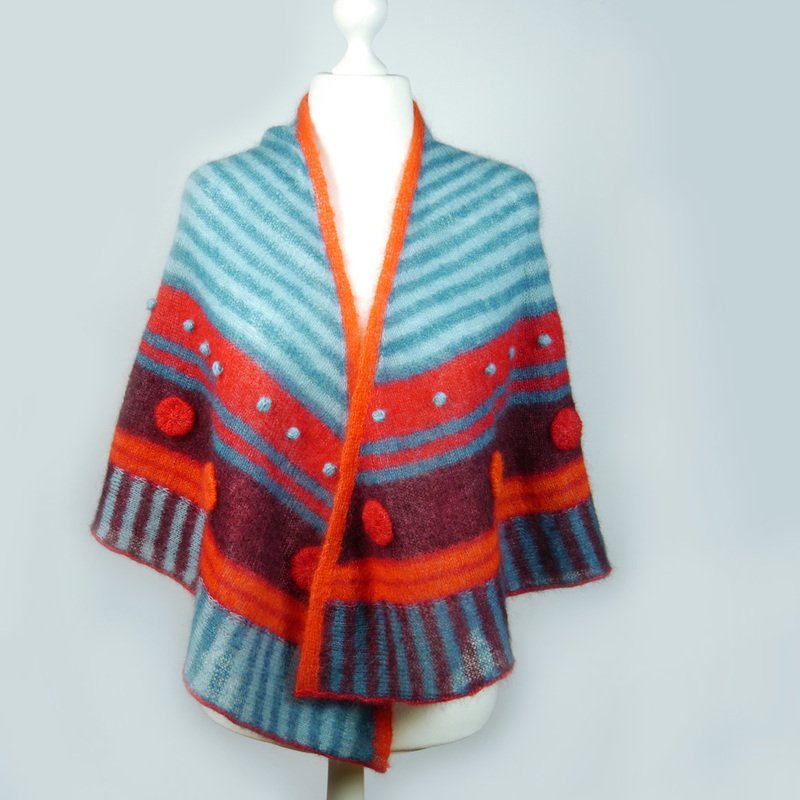 Please mind: I developed this pattern exclusively for mohair lace yarn. There are irregular increases that remain invisible in mohair, but the increases may show in a smooth yarn. Your yarn should have a halo.