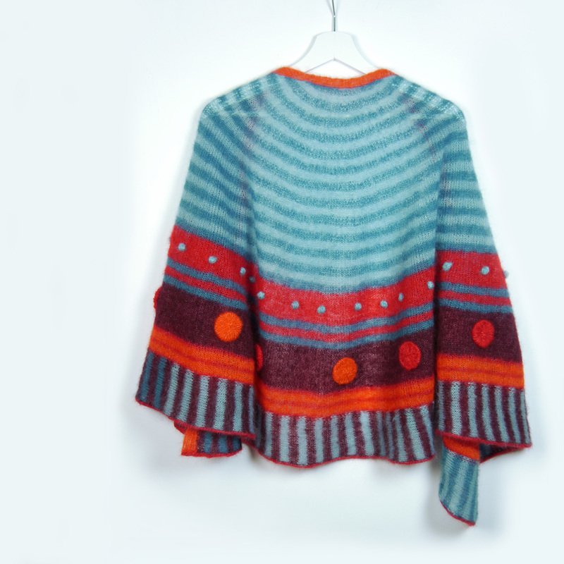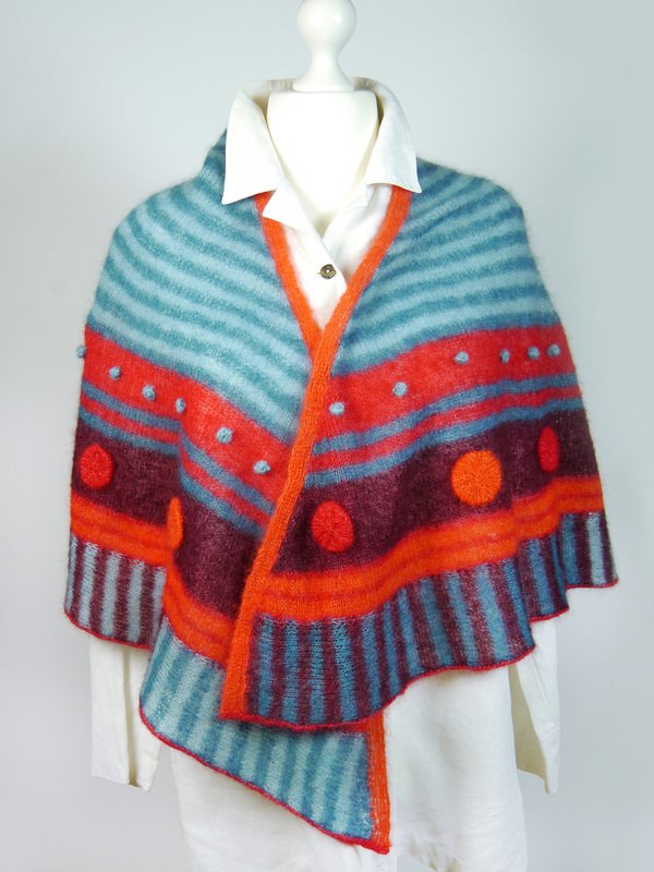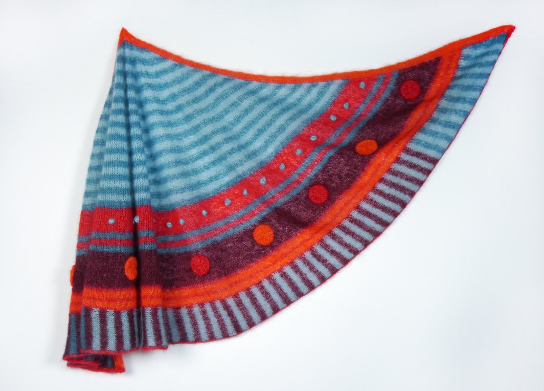 It was a year from the idea to the finished shawl – mainly because I wanted to have big polka dots that are really round. That’s not so easy to achive in knitted fabric, so the shawl was hibernating until I found a solution – an easy and obvious solution. I really wonder why it took me so long …