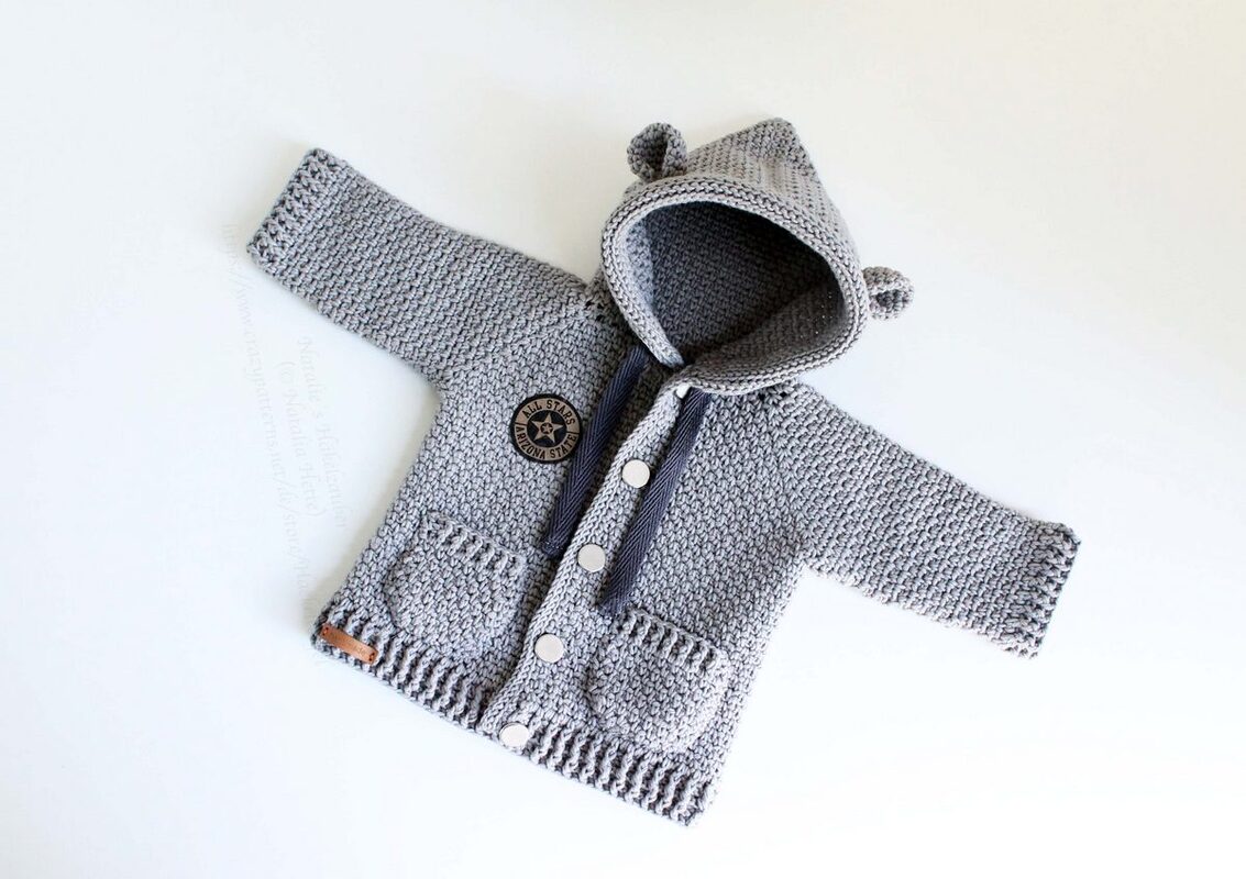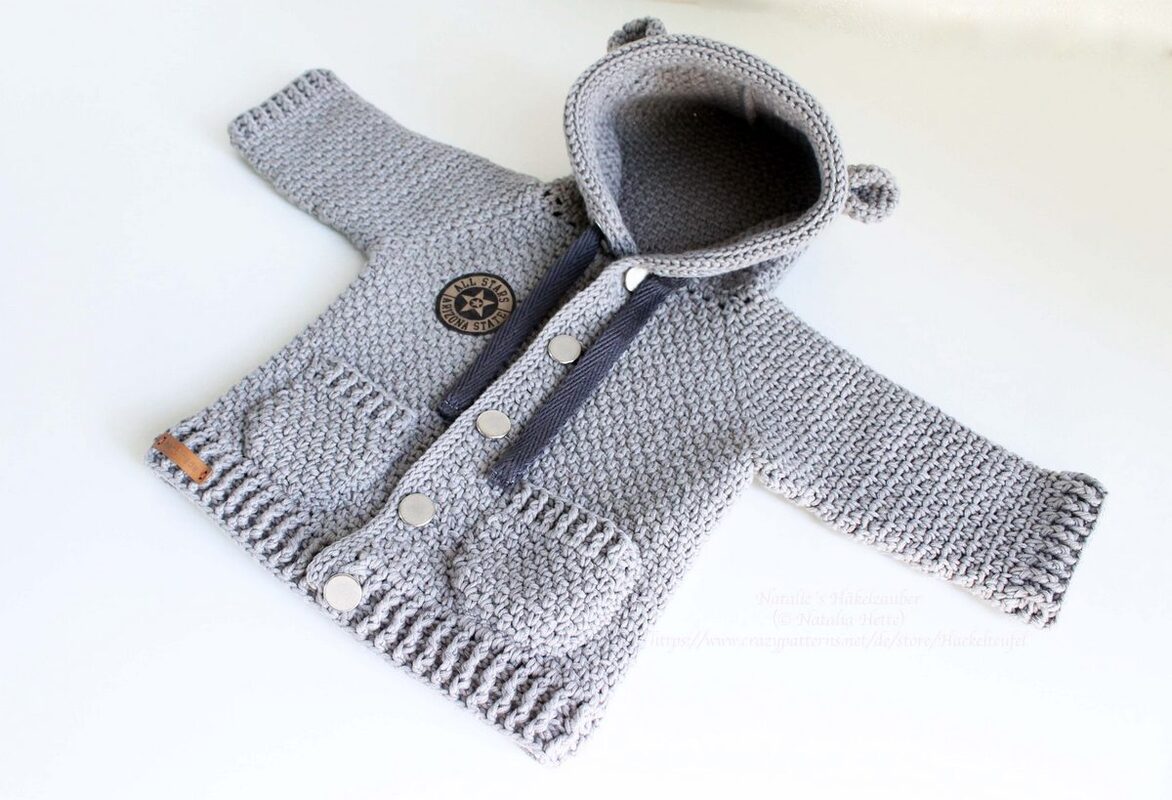 Do you want to crochet a jacket for your child that looks like knitted? Then this crochet tutorial is just for you. A simple children's jacket with a hood and mouse ears and pockets in the front, you can get it done very quickly and easily.