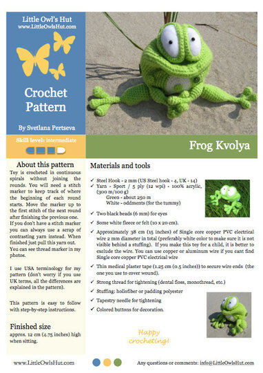 013 Crochet Pattern - Frog Kvolya toy with wire frame - Amigurumi PDF file by Pertseva CP
