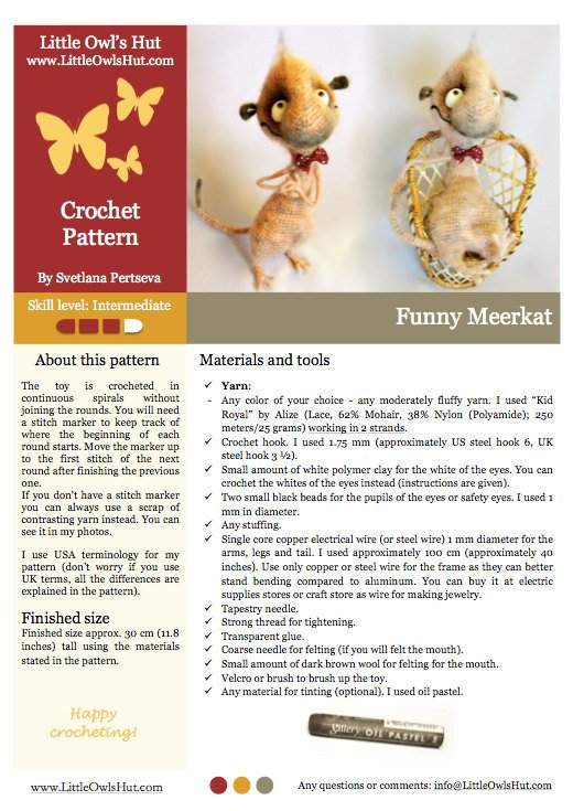 Making stuff from polymer clay (eyes) instructions are given in the pattern.