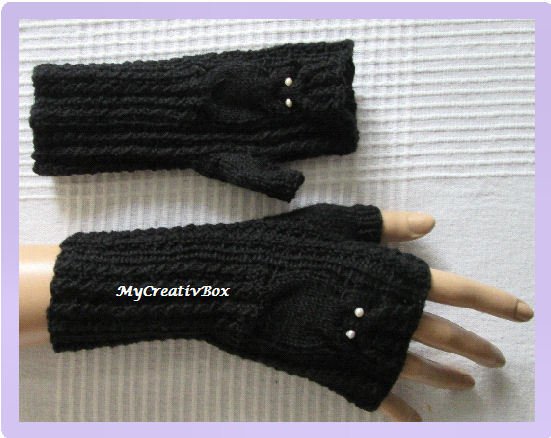 rechte & linke Maschen, rechte verschränkt aus den Querfaden, Zöpfe und Perlen einstricken (wird in der Anleitung erklärt).