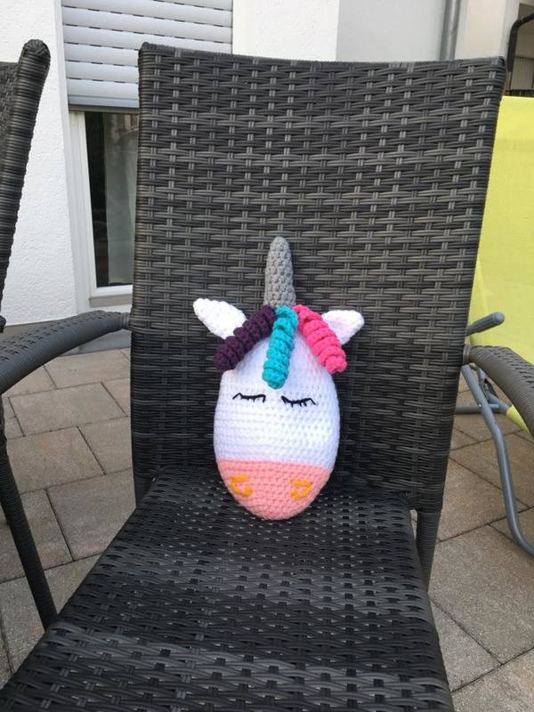 Crochet a cute unicorn cushion quickly, as it works with two strands of yarn held together.