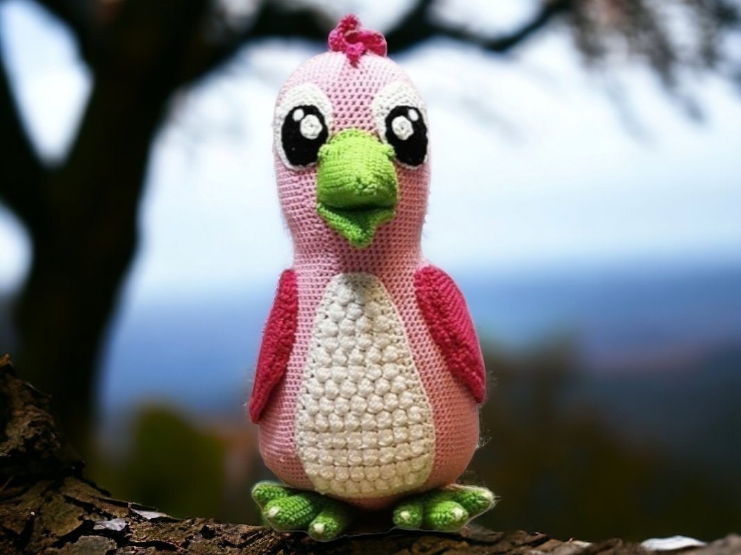 The finished bird will be about 25cm high. Of course, the size can vary depending on whether you crochet tight or loose. The choice of wool is also important. I crochet with Apollo cotton yarn 125m/50g (100% cotton).