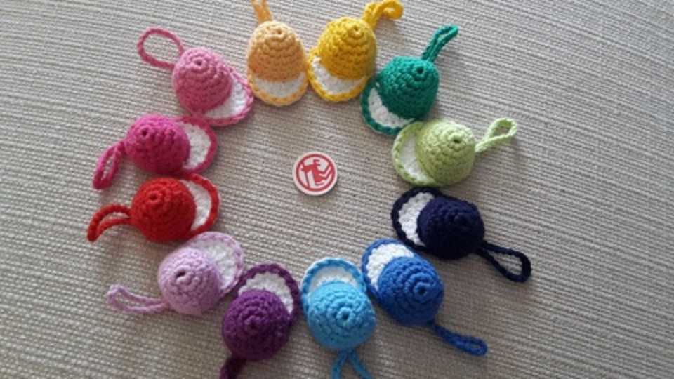 Die Mini-Basecaps werden mit Baumwolle (50 g / 115 m) in deinen Lieblingsfarben und einer Nadelstärke 2,5 gehäkelt und haben eine Höhe von ca. 2 cm.