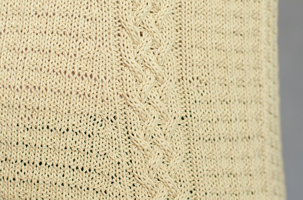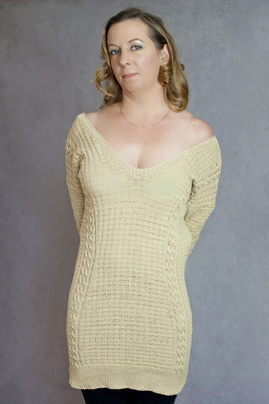 Romy is a perfect summer sweater: The impressing long back V-neck with it’s small bands and the waisted cut make this sweater being a real eye catcher. The structured pattern and the simple cables are easy to knit - so even ambitious knitting beginners can definitely go for this design.