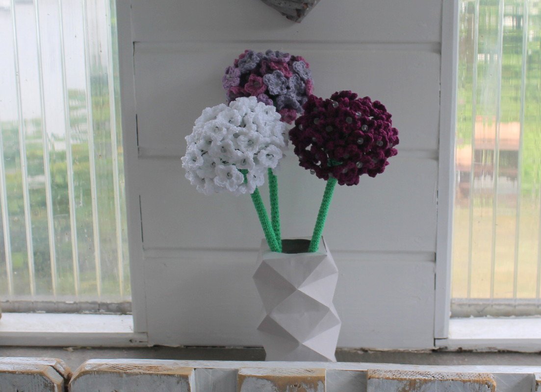 The manual is only 5 pages long and contains a lot of photos. Crocheting the flowers is very easy.