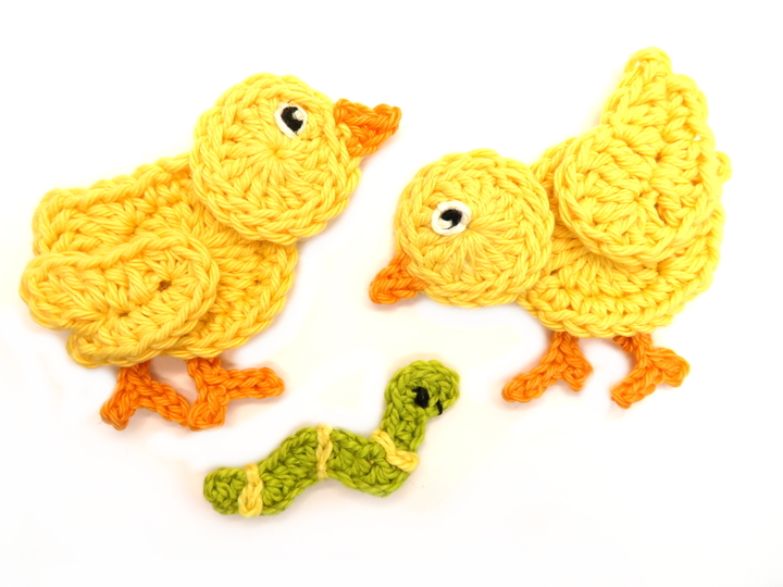 The Little Chick measures about 3 in. in height by 2 1/2 in. wide using 2.5 mm crochet hook but the size can be varied by using thinner or thicker yarn and types of hook. Colors can be changed according to your personal preference. The pattern is designed for worsted weight yarn and uses American English crochet terms.