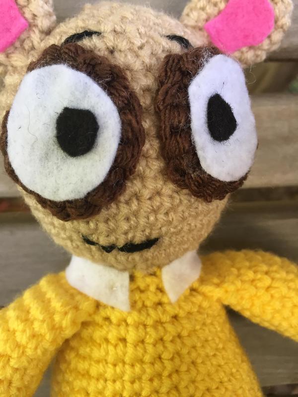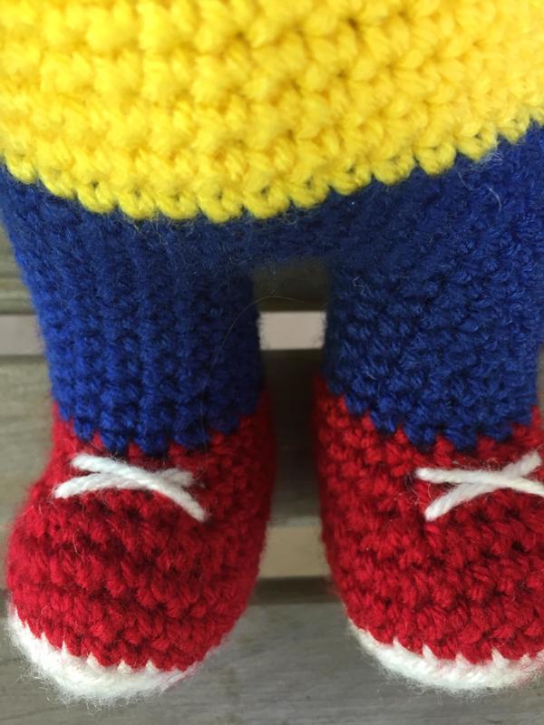 This little guy can be worked up in any yarn weight or hook size. It may alter the size of the finished product. Make sure to make tight stitches so the stuffing stays in. He measures about 10.5 inches tall.