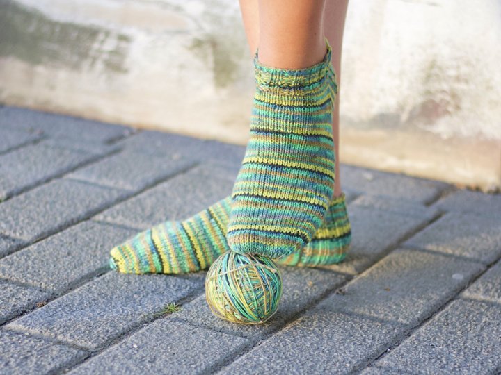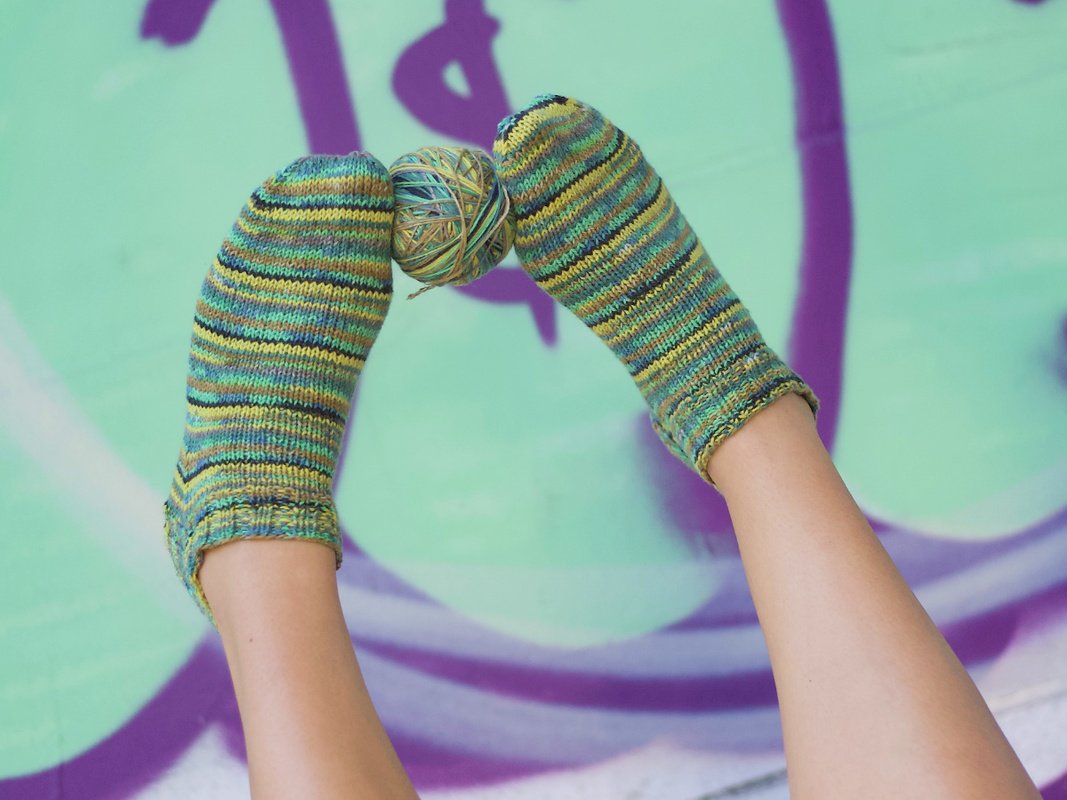 Immer häufiger wird nach Sockengarnen gefragt, die Veganer und Allergiker nutzen können. Während eines Strick-Wochenendes in der Nähe von Soltau, fiel mir ein Knäuel der Solo Cotone von Lana Grossa in die Hände. Ein Garn, aus dem ich unbedingt Sommersocken stricken wollte. Also musste es mit nach Hause und wurde nun endlich verarbeitet. Da das Garn eine etwas ungewohnte Stärke hat, musste ich die Angaben aus mehreren Sockenstricktabellen zusammenwürfeln. Außerdem habe ich das Muster ein wenig der Farbe des Garns und der Qualität angepasst, meine liebste Ferse und meine favorisierte Spitze gestrickt. Die Anleitung ist so geschrieben, dass auch geübte Anfänger sie nacharbeiten können. Die Anleitung enthält keinen Grundkurs und keine Detailfotos.