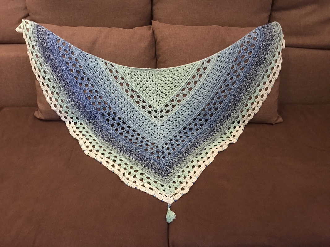 Als Material könnt ihr einen beliebigen Bobbel verwenden. Es gibt eine Erklärung für ein kürzeres Tuch (rund 1000lfm) und auch für ein längeres (1200lfm)