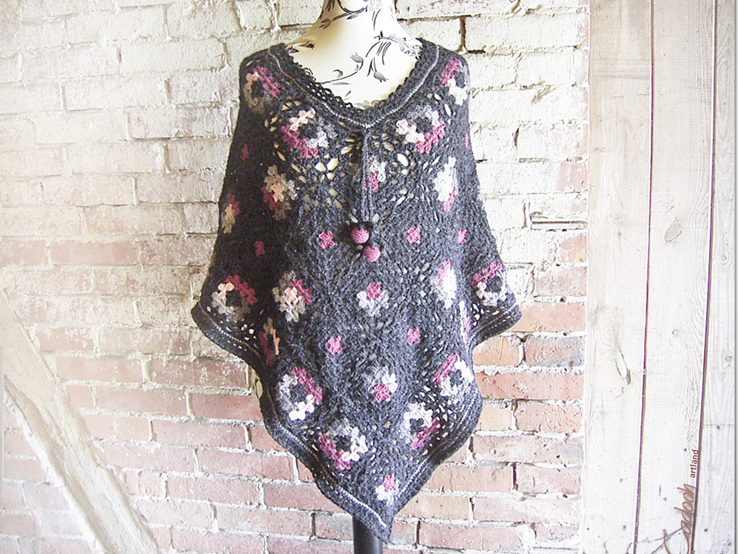 Häkle Dir einen kuscheligen Poncho aus Puzzle-Granny Squares umrahmt von feiner Spitze