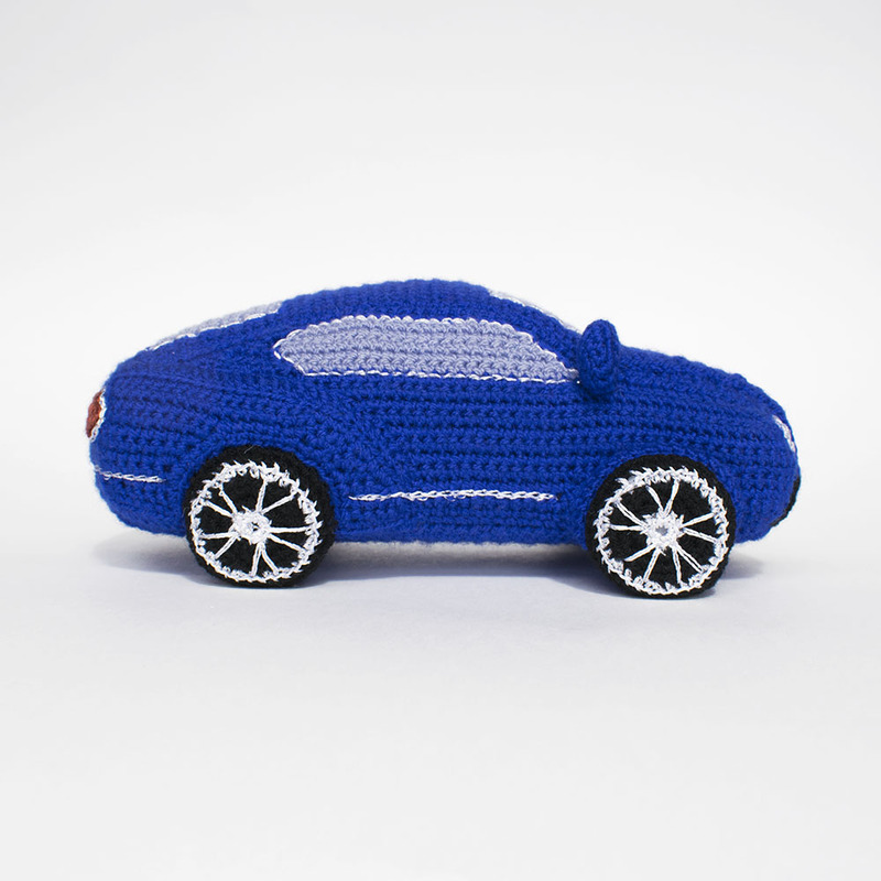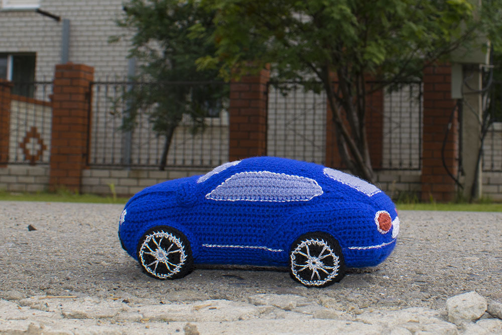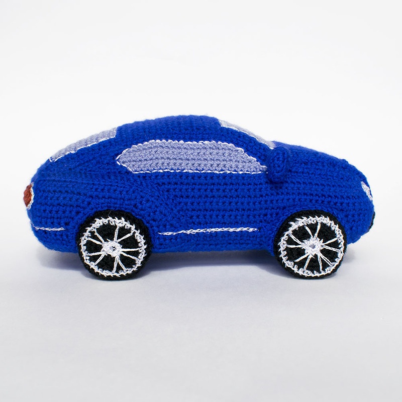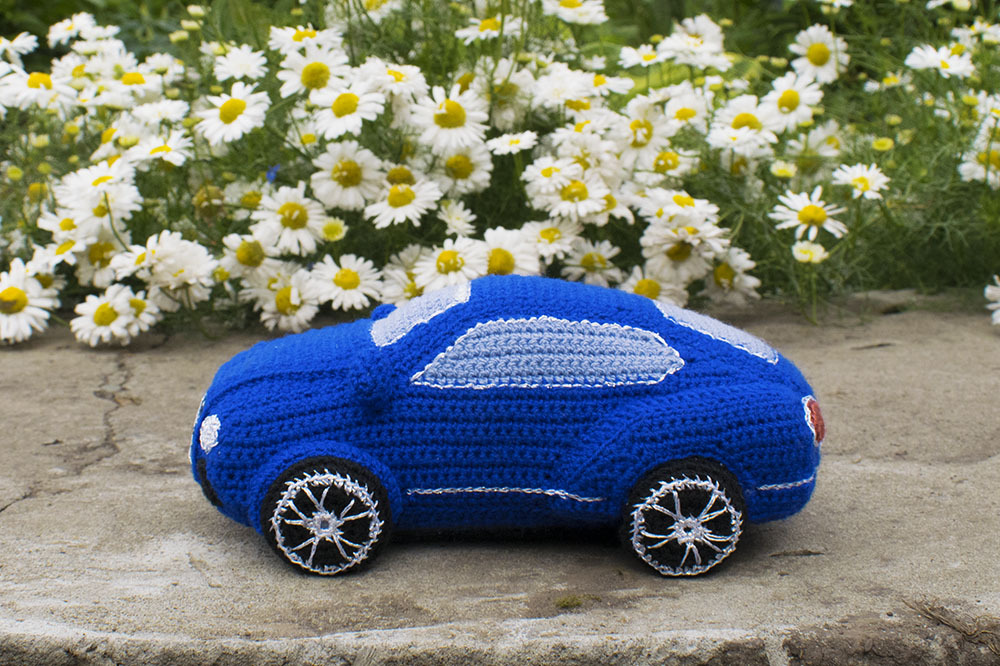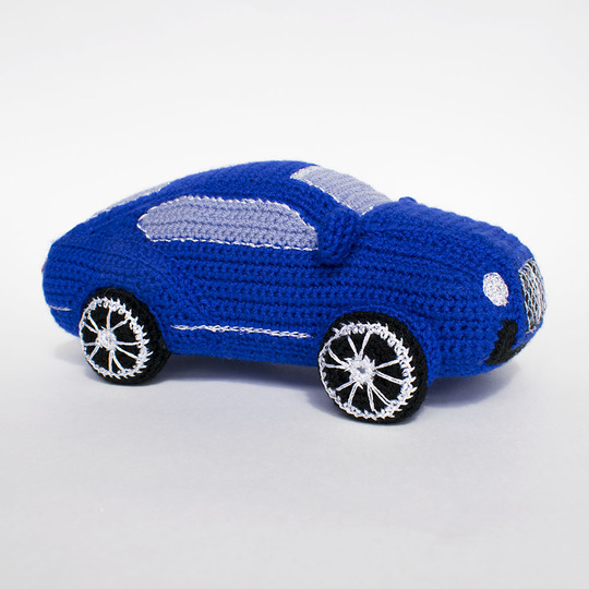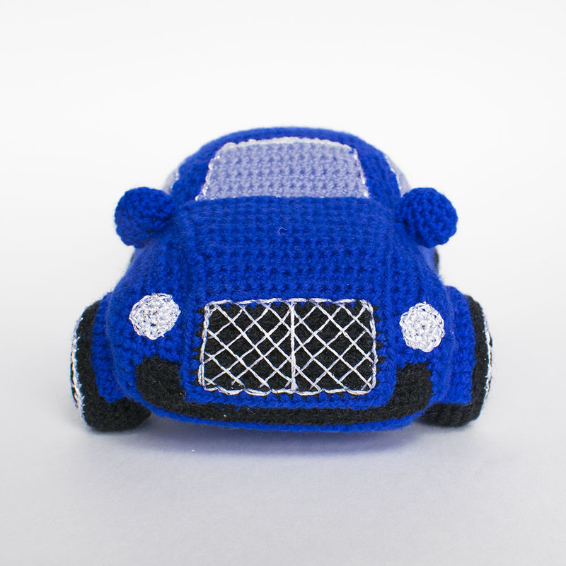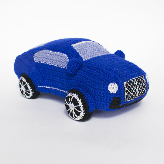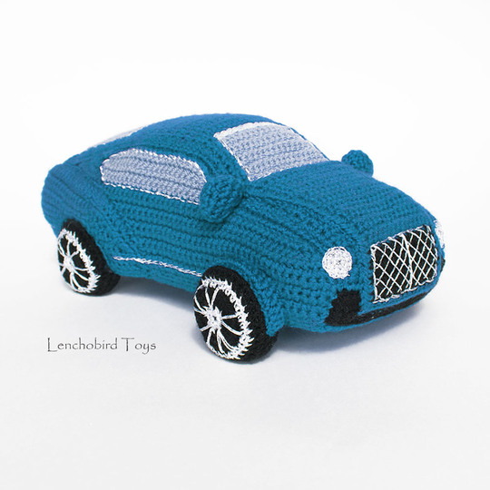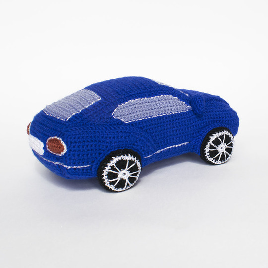 1) Acrylic: yarn weight Fingering / 4 ply (14 wpi) (500 meters/100 gr), e.g. “Acacia” by Troitsk Yarn, Baby Solids by Bernat, Lusy by Eliah – blue (one skein is enough for the car body), light-blue, black, silver (or gray)