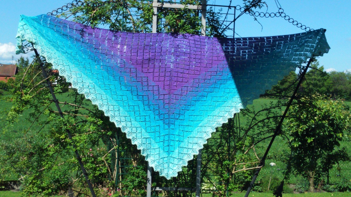 Aquarius 2.0 is the second variation of the previous Aquarius and a breeziliy, casual and simple summer shawl. Not only the knitting of the laceshawl is fun in summer, also wearing it is luxury on hot days.