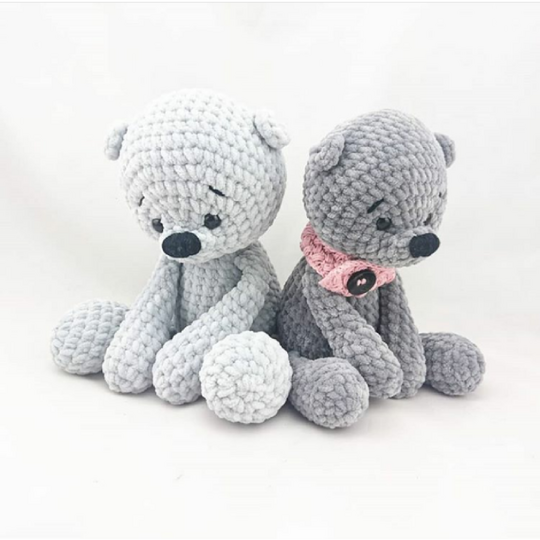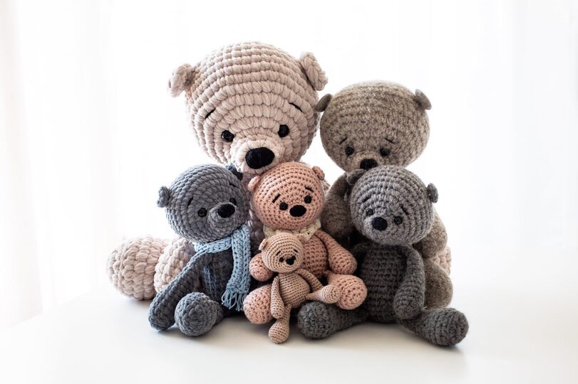 • mit der gängigen Baumwolle (50g/125m) wird der Teddy ca. 13 cm
