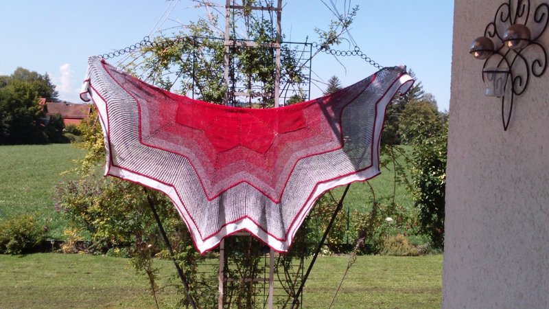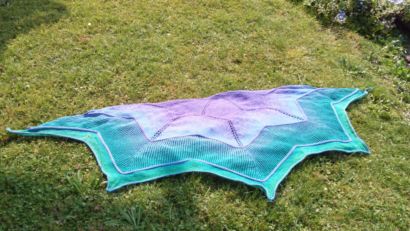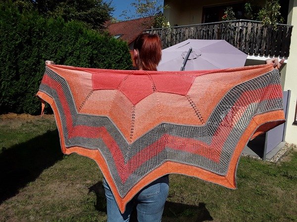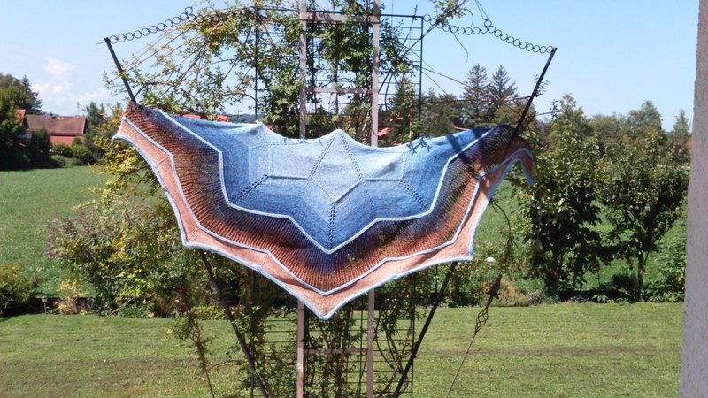 Stellarius is in Latin the male version for star and for me the counterpart to our “delicate” shawl “Starlet”. The challenge here was for me to knit big, pronounced jags / rays and to describe the whole thing so that it can be knitted.
