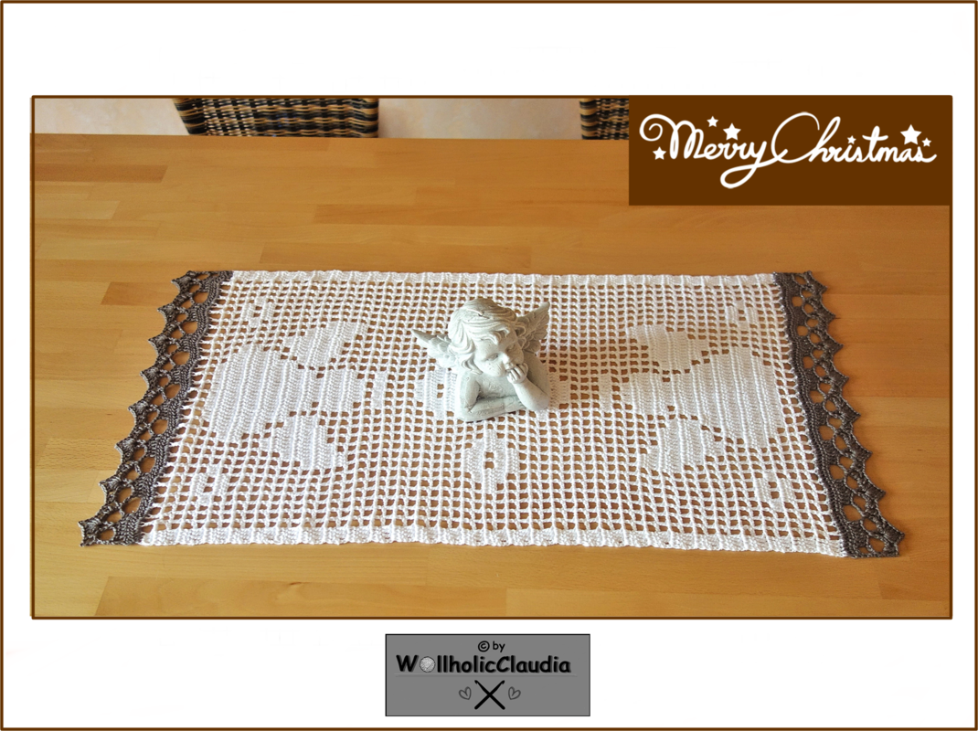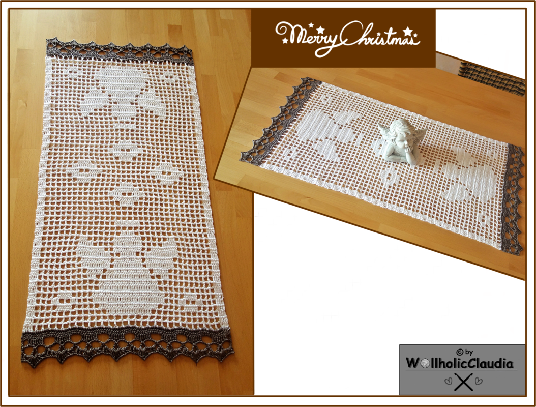 Nicht nur zur Weihnachtzeit schmückt dieser wunderschöne Tischläufer "Engel" den Esstisch oder die Anrichte. nicht zur Festtafel.