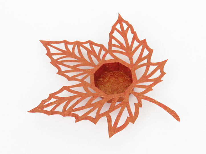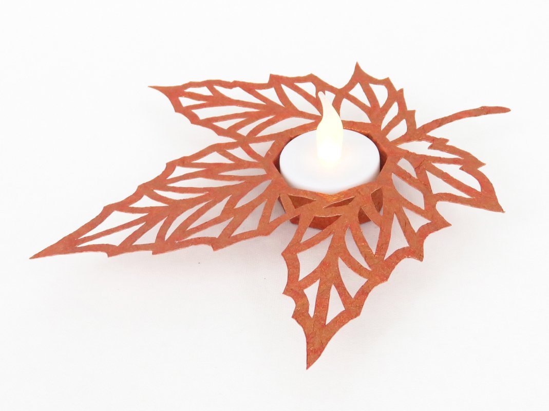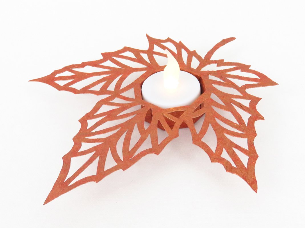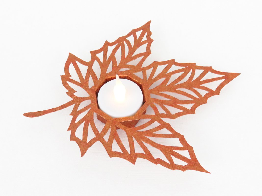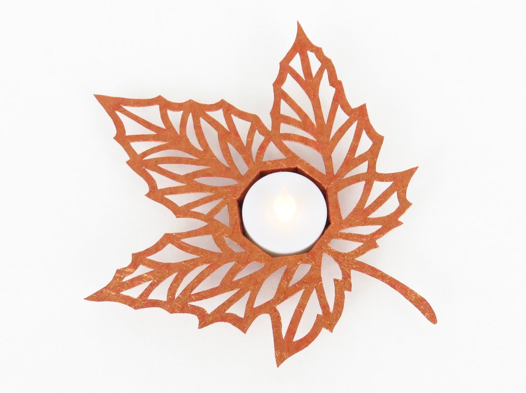 Eine Herbstdekoration für deinen Lieblingsplatz zu Hause – dem filigranen und edel wirkenden Teelichthalter sieht man gar nicht an, dass er aus Papier besteht und gebastelt wurde.