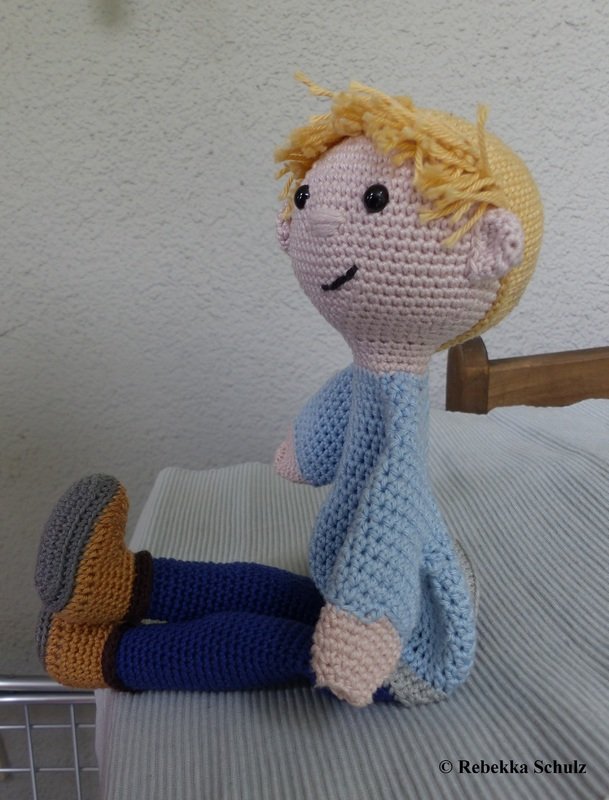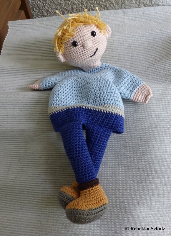 Aus mercerisierter Baumwolle mit einer LL von 125 m ist Tobi für erwachsene Hände bis zur Handschuhgröße 8 sehr gut bespielbar. Tobis Gesamtgröße beträgt etwa 30 cm.