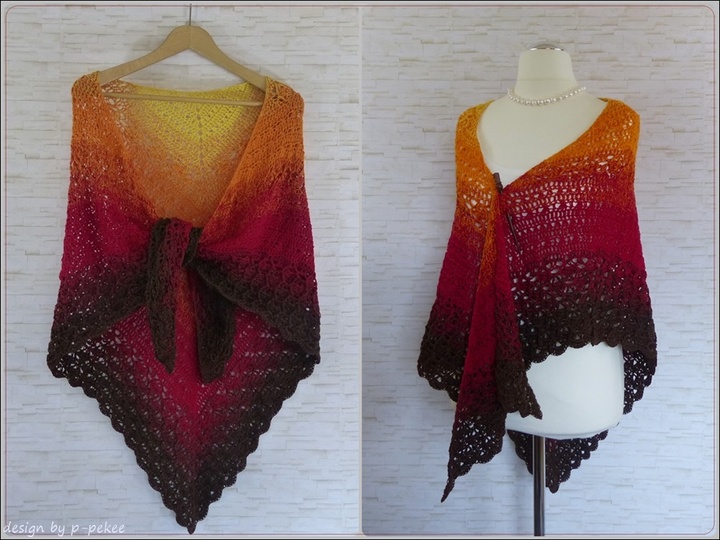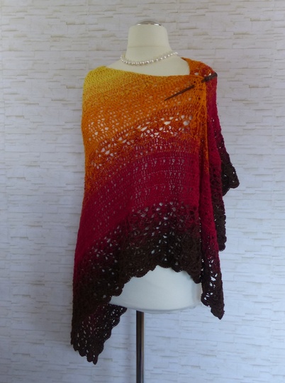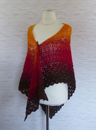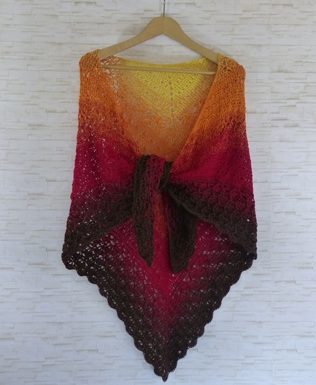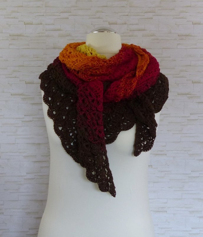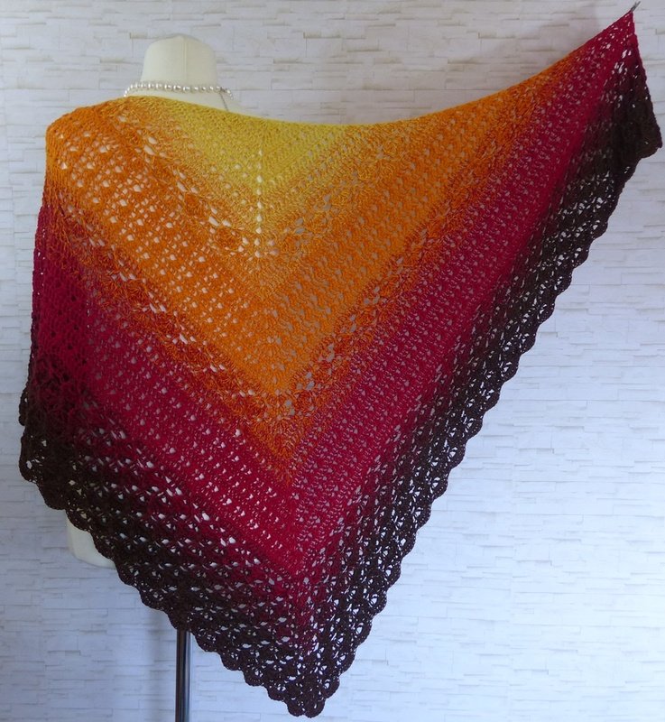 The shawl can be crocheted with almost any yarn (needle size 2.5 - 4). A beautiful color gradient yarn is best suited to show off the pattern to its best advantage. Of course, it can also be crocheted with thin merino wool or sock wool.