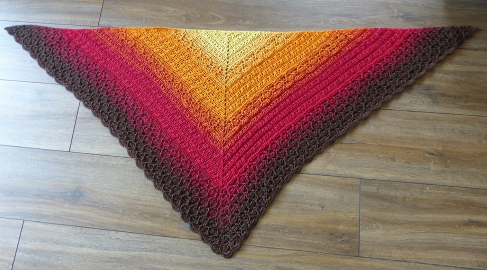 Autumn Blossom is a crocheted shawl with a beautiful flower pattern. The shawl is super quick to crochet as the pattern alternates again and again.
