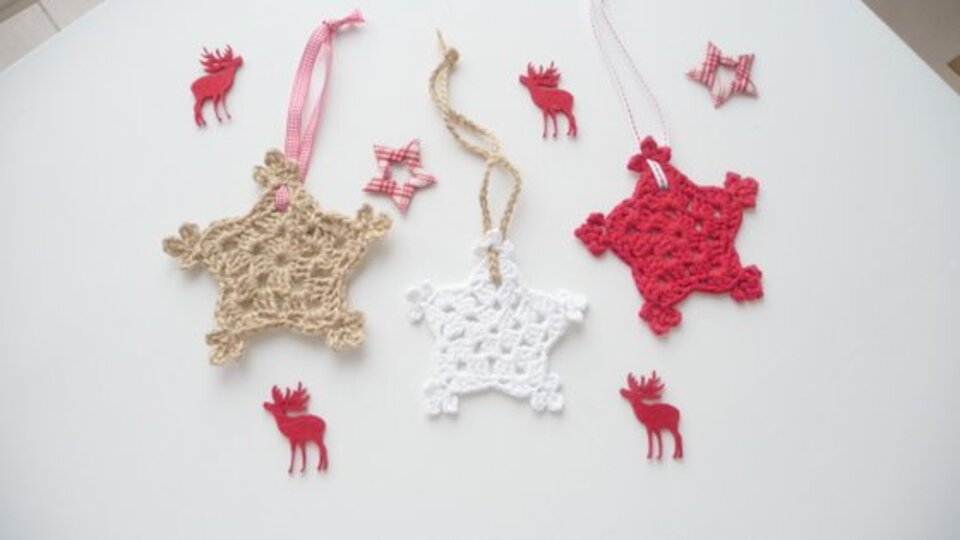 Dein selbstgemachter Weihnachtsschmuck - der Häkelstern (ca. 15 cm groß) geht mit dieser Anleitungen einfach und schnell und deiner Kreativität sind keine Grenzen gesetzt - verziert mit Stoffbänder, Perlen, Stickereien... ja sogar etwas anderns evtl. mit Nieten ... unzählige Möglichkeiten - DIY Do It Yourself!