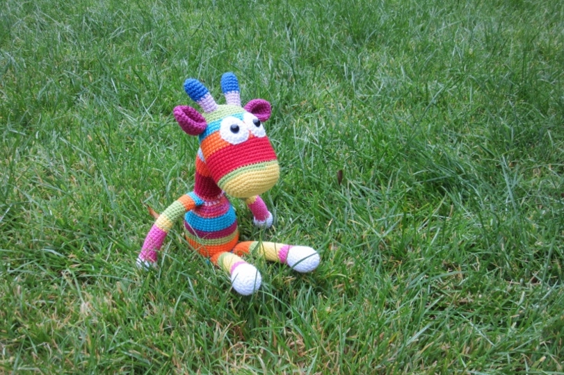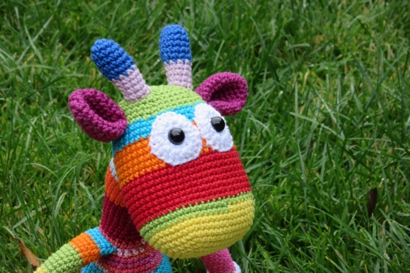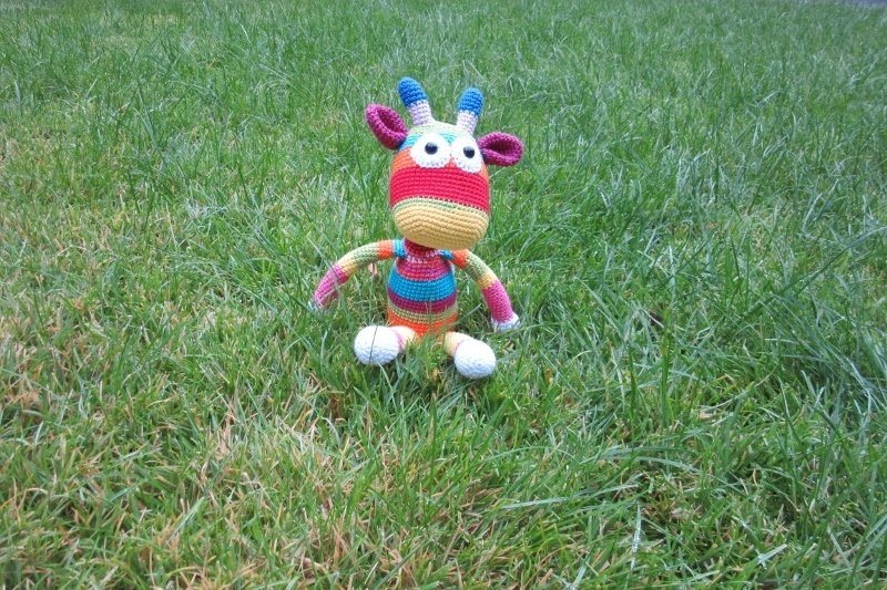Diese Häkelanleitung beeinhaltet die Streifengiraffe Geraldine.